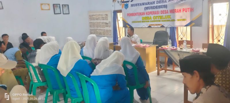 Global Expose TV Kabupaten Pandeglang Banten – Pada hari Senin, 25 Mei 2025, bertempat di Balai Desa Citeluk, Kecamatan Cibitung, Kabupaten Pandeglang, telah dilaksanakan Musyawarah Desa Khusus (Musdessus) dalam rangka pembentukan Koperasi Merah Putih, sebagai tindak lanjut dari Instruksi Presiden Nomor 9 Tahun 2025 tentang Penguatan Ekonomi Kerakyatan Berbasis Desa.