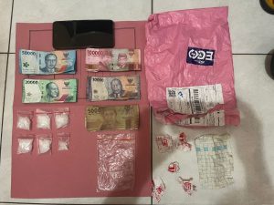 Dari hasil penggeledahan, petugas menemukan satu bungkusan plastik warna pink yang berisi: