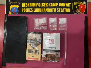 Global Expose TV Kabupaten labuhan Batu Selatan – Satuan Reskrim Polsek Kampung Rakyat di bawah jajaran Polres Labuhanbatu Selatan kembali menunjukkan komitmennya dalam memberantas peredaran narkotika di wilayah hukumnya. Seorang pria berinisial MNH alis Udin (25) warga Dusun VI Sidodadi, Desa Perkebunan Teluk Panji, Kecamatan Kampung Rakyat, berhasil diringkus petugas bersama barang bukti narkotika jenis sabu seberat 1,86 gram pada Minggu (12/10/2025) malam.